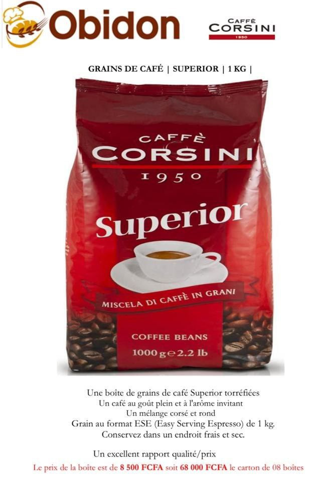 Une boîte de grains de café Superior torréfiées.