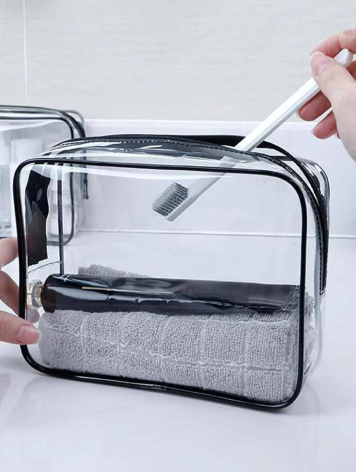 Trousse d'accessoire de Toilette Transparente vide (couleur disponible: Rose, noire et le vert) Disponible à Lomé.
