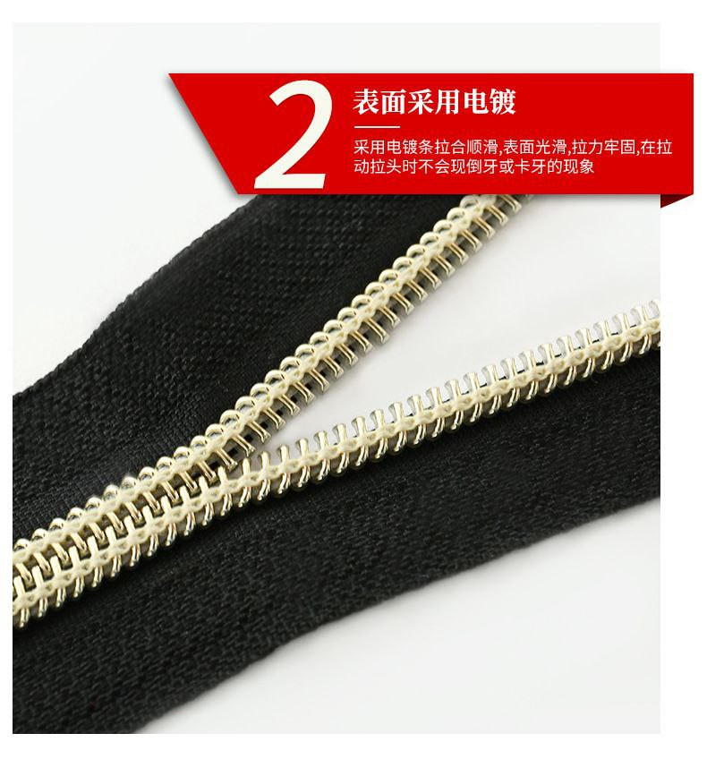 Fermeture à glissière en nylon panaché n ° 5 or clair Dents en or clair Dents plaquées sous vide
