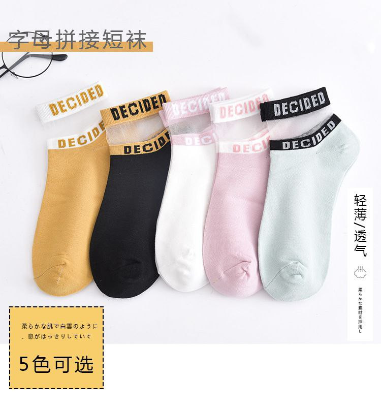 Bas de dentelle ton D filles bas de cristal d'été section mince version coréenne de bas de carte de lettre de contraste de couleur