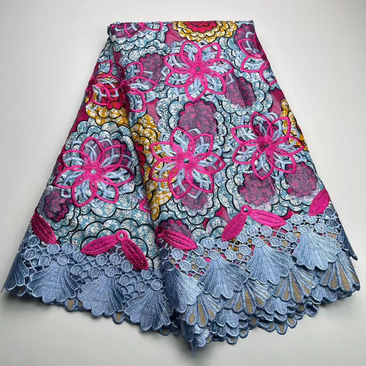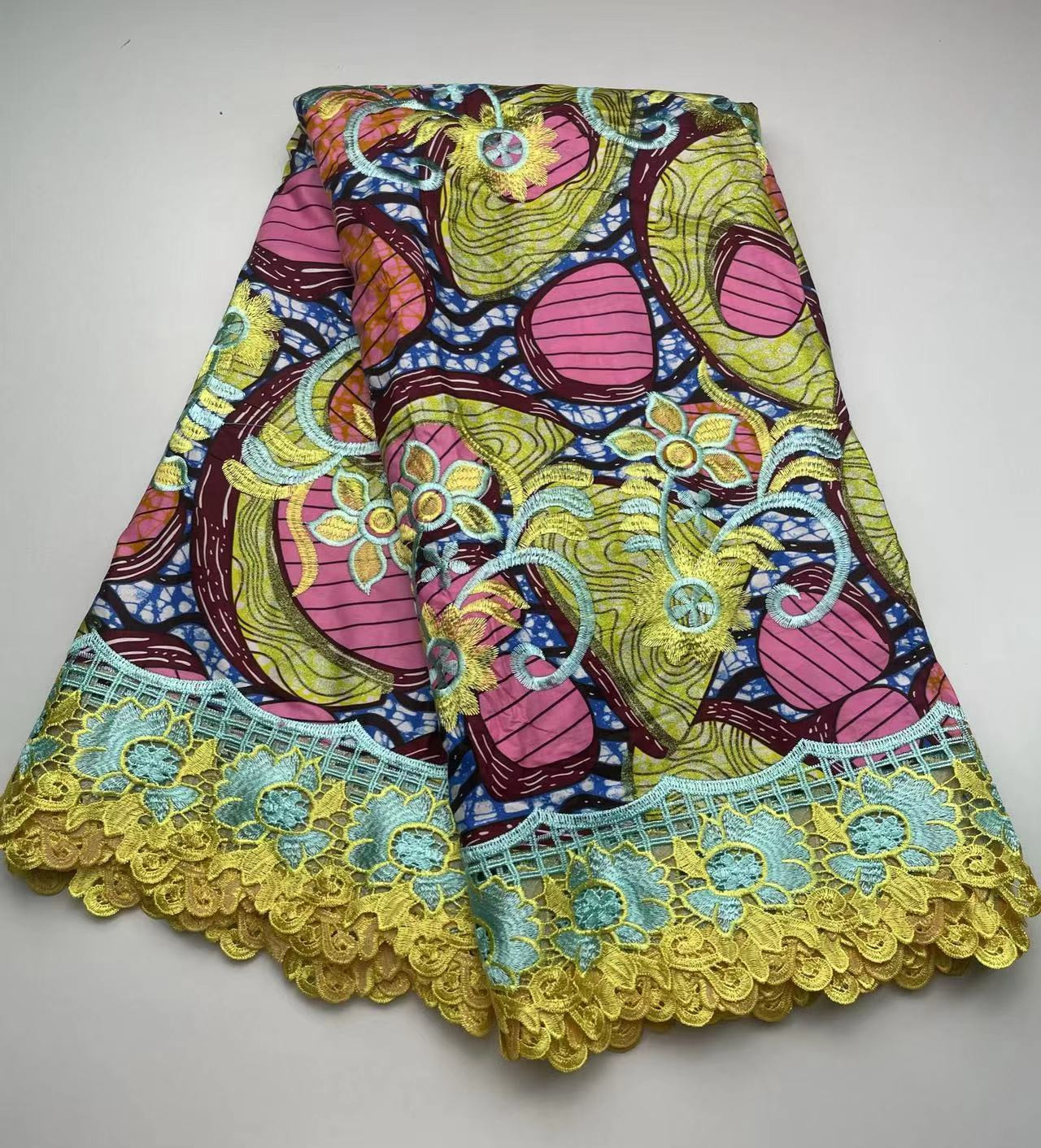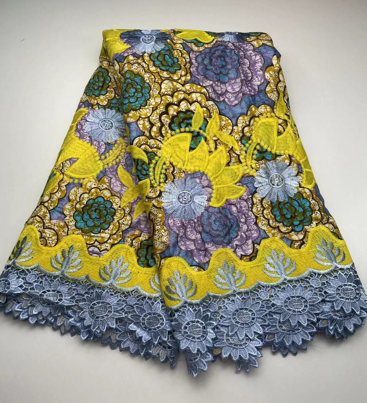 Tissu de dentelle de broderie aux bord fleuris de cire africaine de coton a la mode par coupe de 6 yards