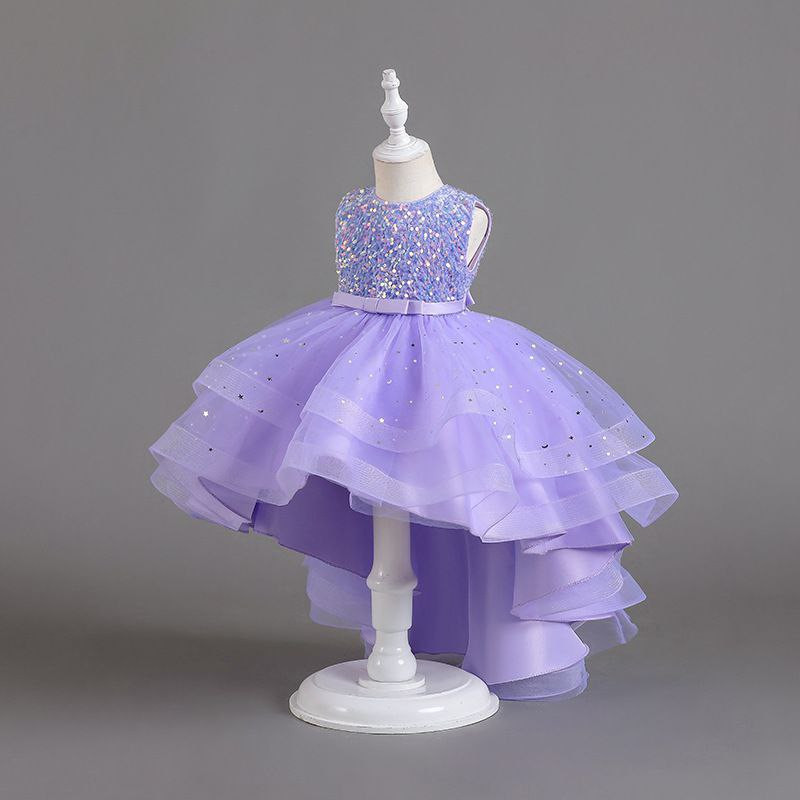 Robe de princesse pour filles, robe de queue sans manches, jupe tutu de demoiselle d'honneur, robe de mariée, défilé de scène, performance de piano, robe de soirée