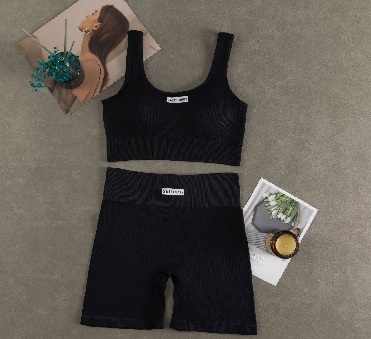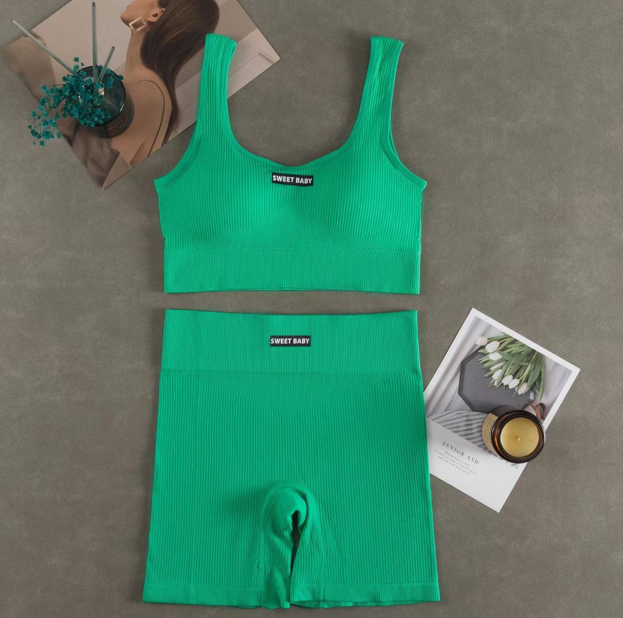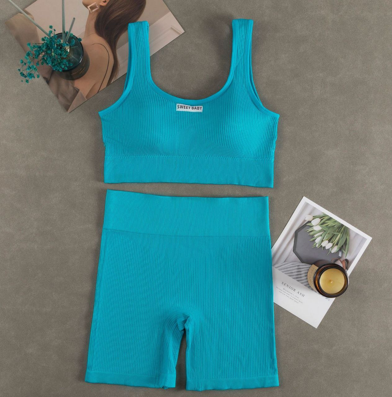 Combinaison de dos de yoga de sport avec lettres pour l'été, gilet sans fil pour femmes, short simple de couleur unie