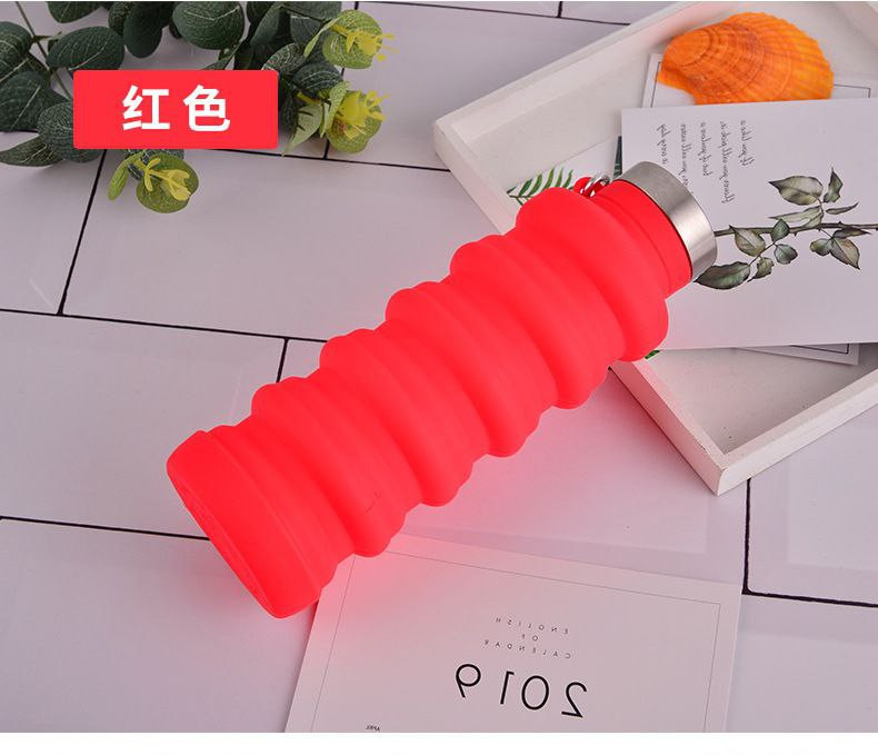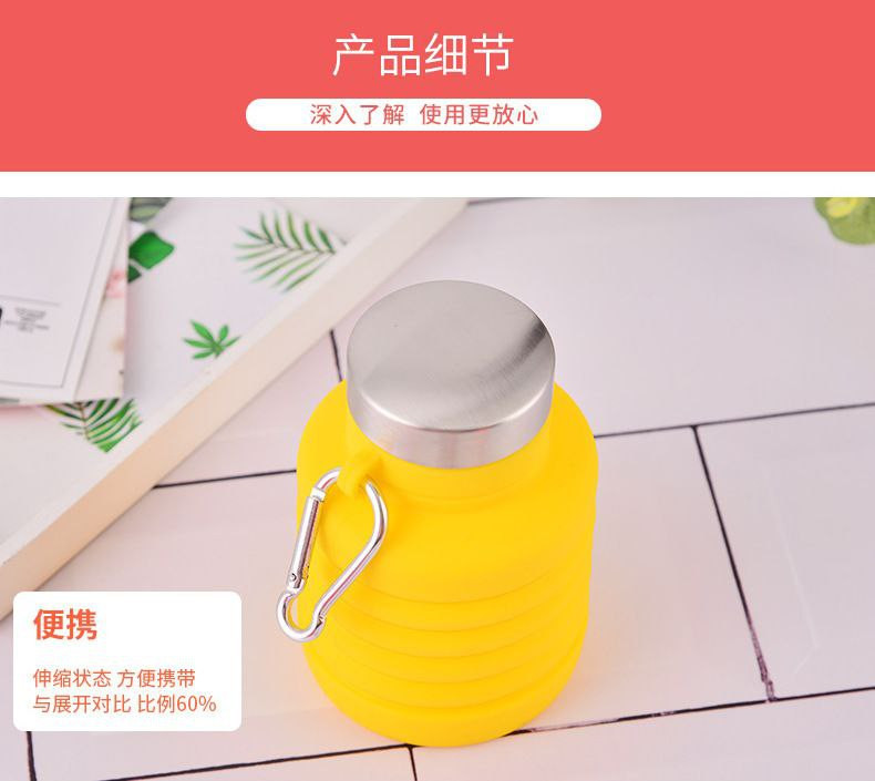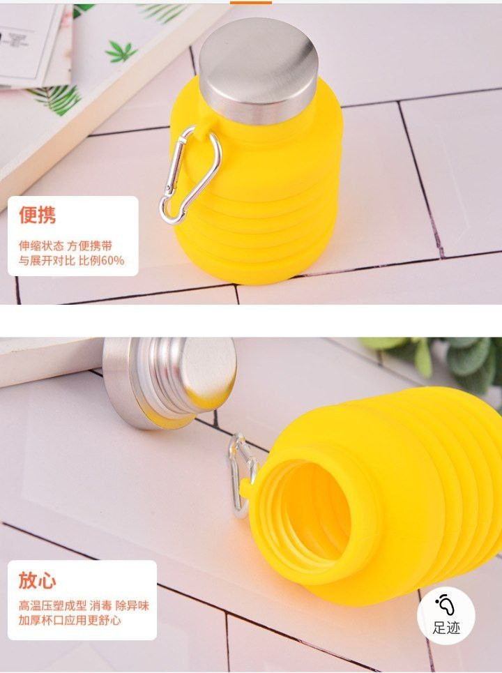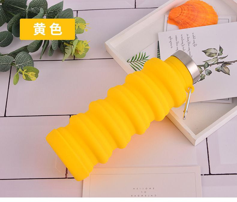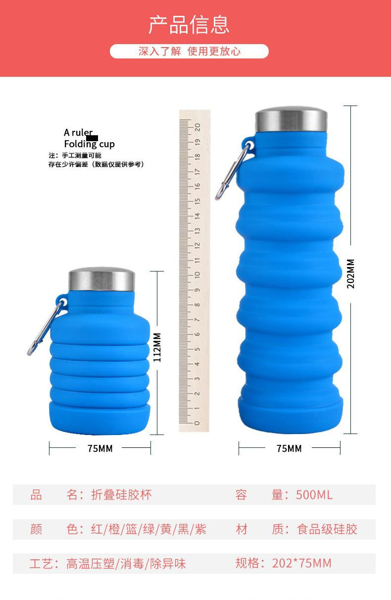 Tasse en silicone tasse pliante rétractable sports de plein air voyage bouteille d'eau portable tasse d'eau portable avec mousqueton nouveau modèle 500ml