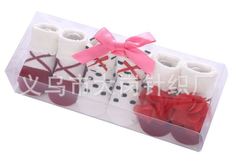 Mignon chaussettes pour enfants arc transfrontalier princesse rayé bébé chaussettes boîte-cadeau