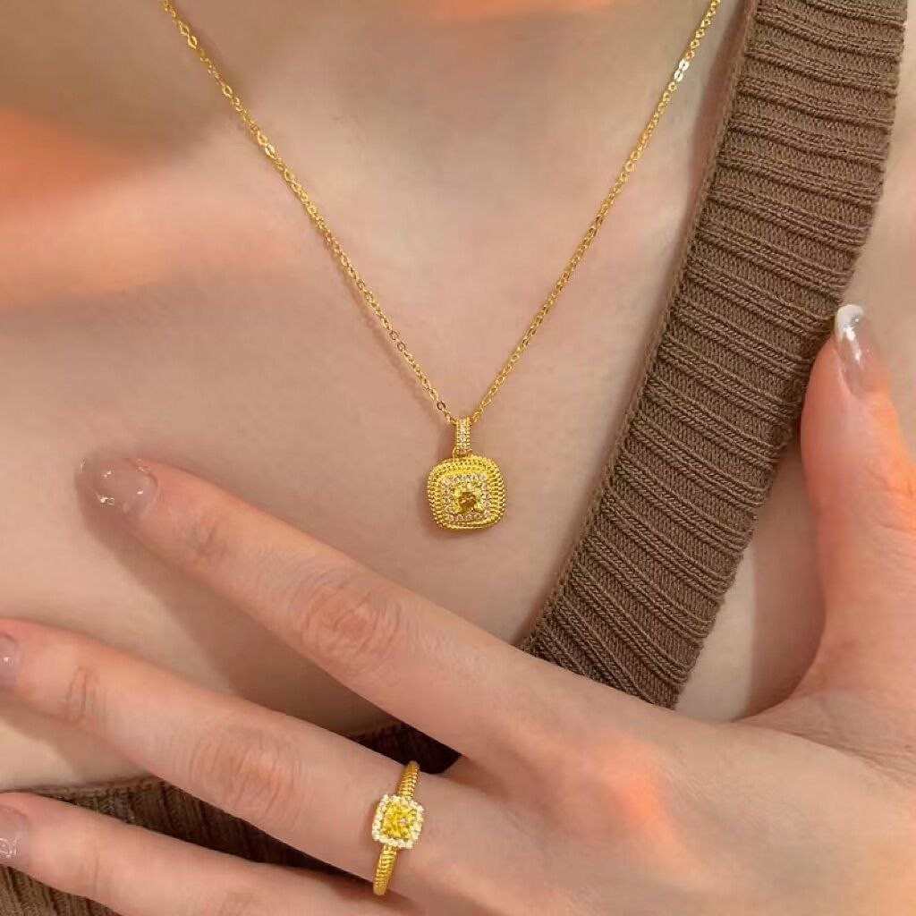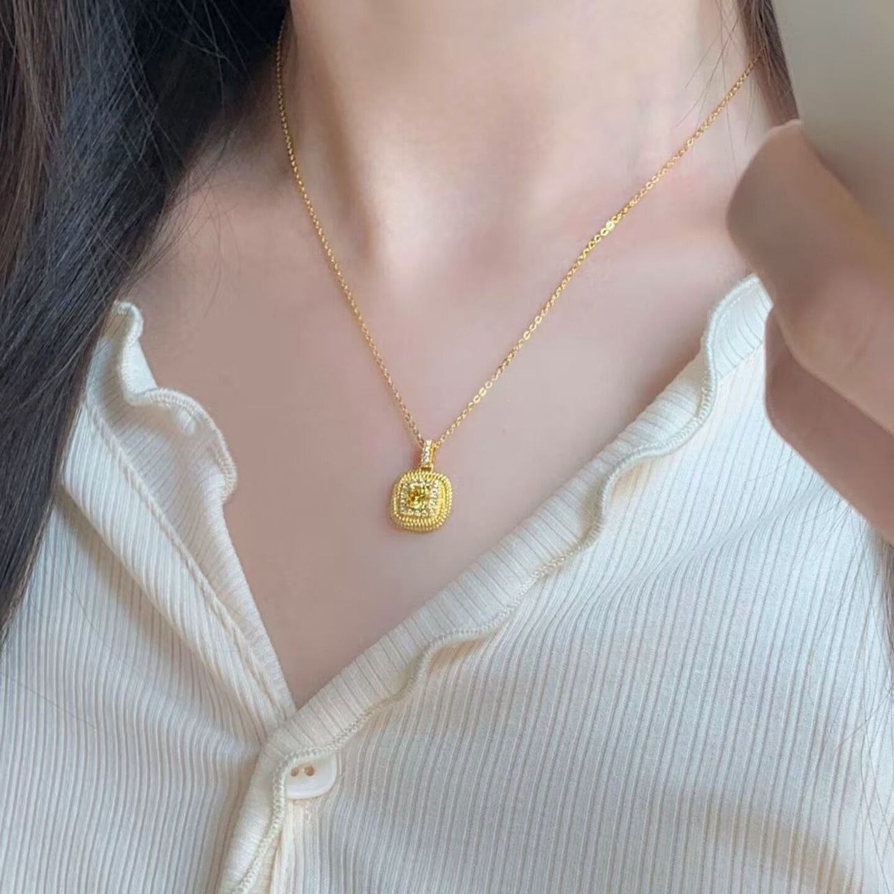 Collier petit morceau de sucre de tempérament qui ne se décolore pas, à la mode et polyvalent, chaîne de clavicule haut de gamme, bijoux de luxe légers