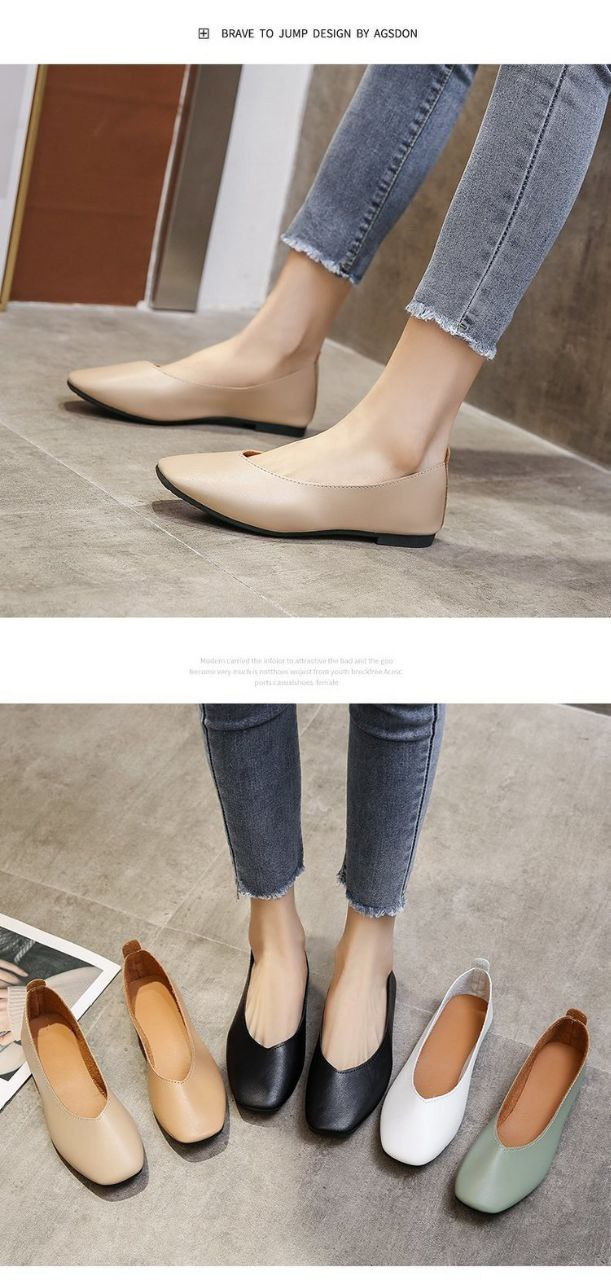 Chaussures simples pour femmes, nouveau style chaussures en cuir souple chaussures plates rétro pour femmes bout carré à bouche peu profonde