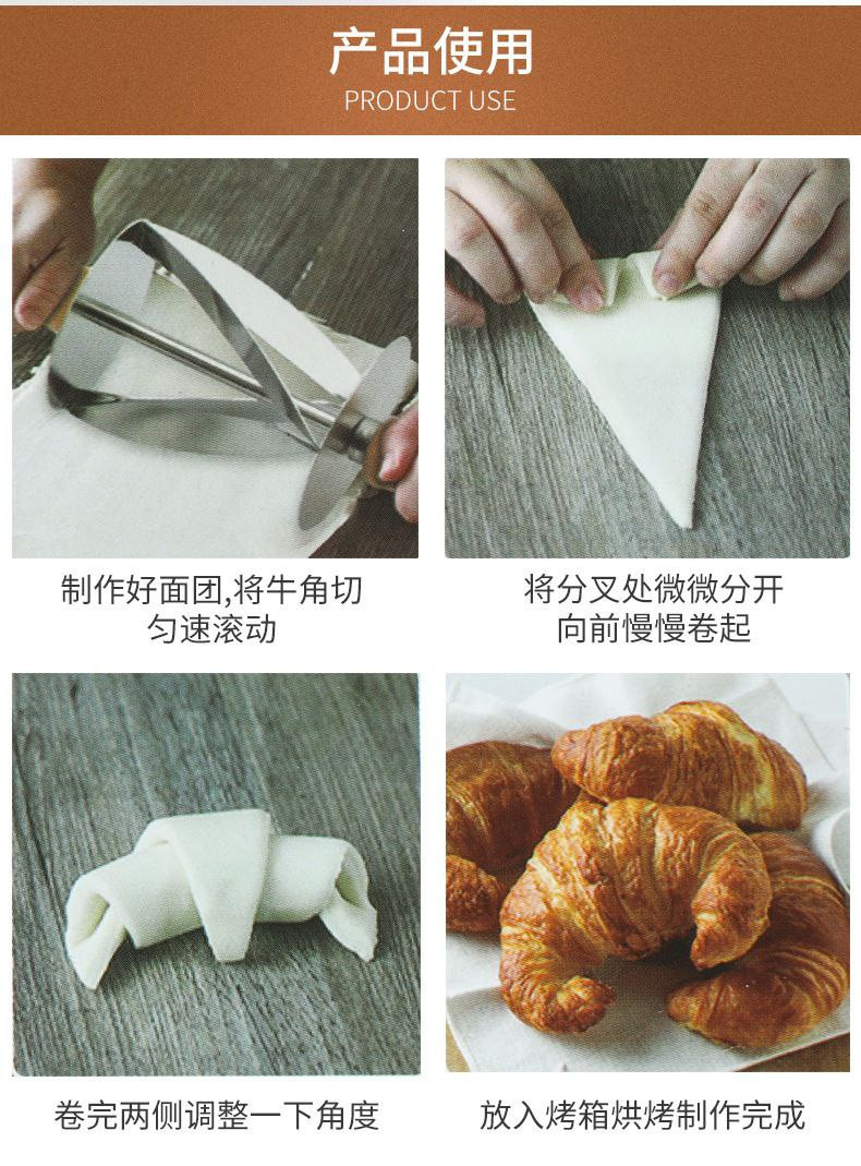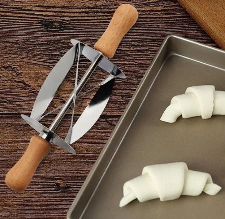 Nouveau couteau à pâte triangulaire de cuisine en acier inoxydable, couteau à rouleau, couteau à roue à croissant, outils de cuisson 20cm