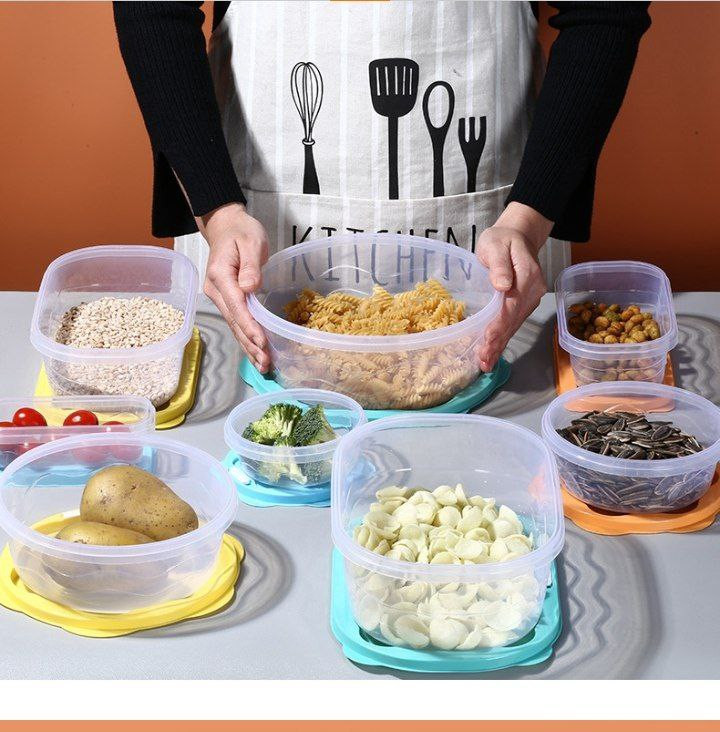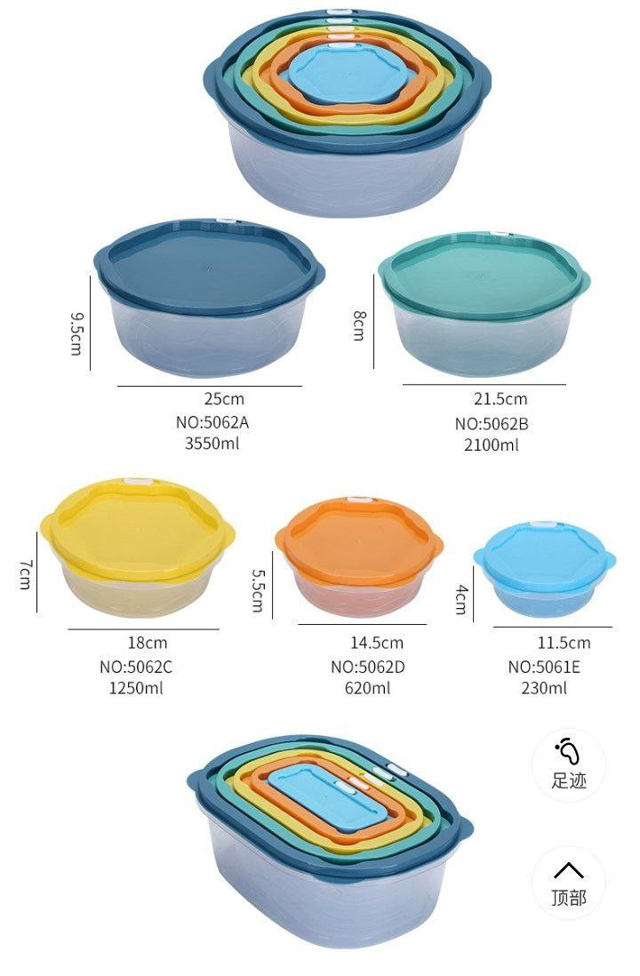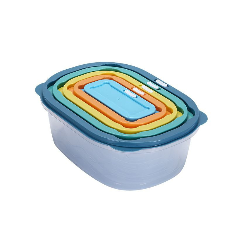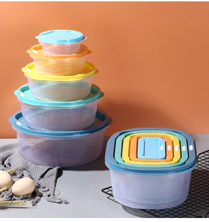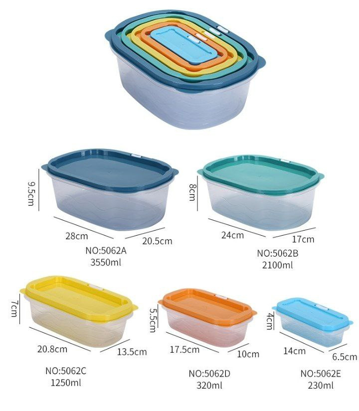 Bac à légumes en plastique rond rectangulaire boîte de rangement pour micro-ondes couleur boîte scellée ensemble de 5 pièces