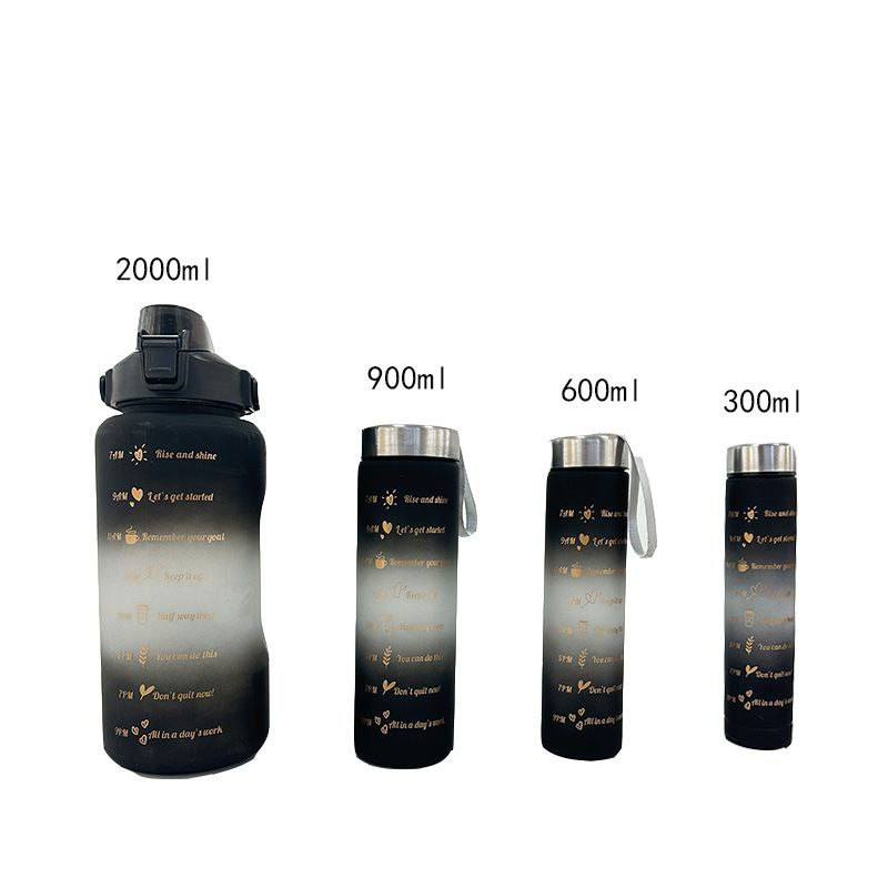 Ensemble de quatre pièces de gobelets à eau givrée dégradée, spatial portable en corde, bouteille d'eau de sport en paille rebondissante de grande capacité