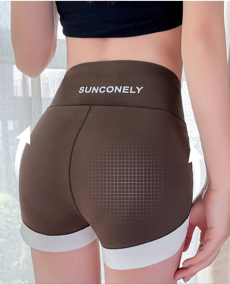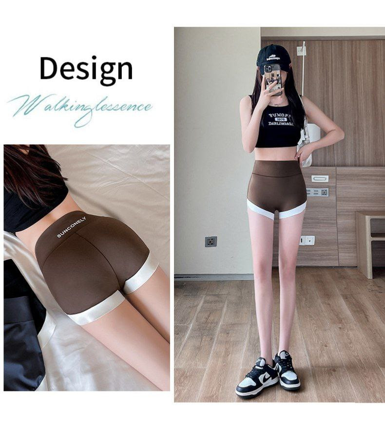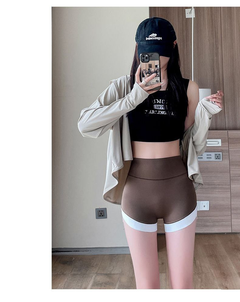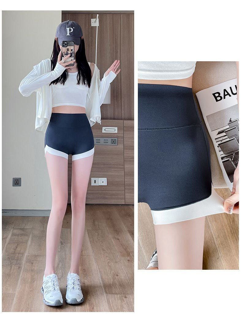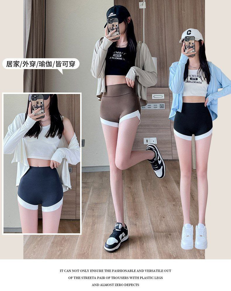 Short de sport de yoga pantalon de sécurité épissé pour femmes été taille haute couleur contrastée pantalon de yoga serré qui soulève les fesses