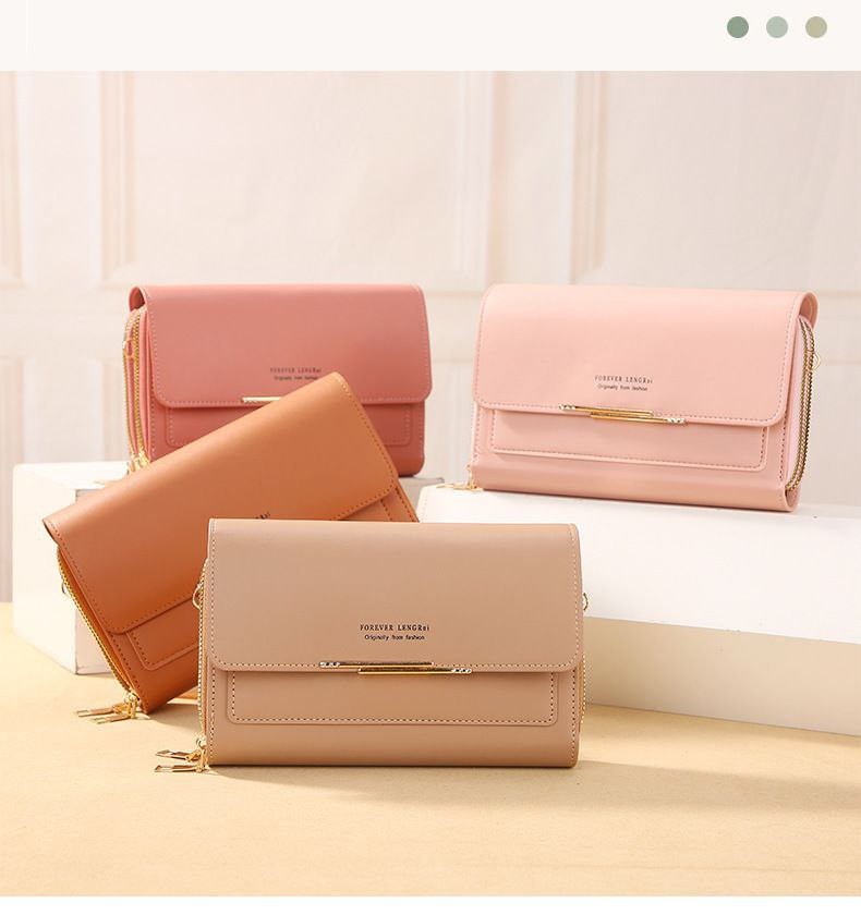 Nouveau sac à bandoulière pour téléphone portable simple et polyvalent à fermeture éclair de couleur unie pour femmes, sac à bandoulière multifonctionnel à la mode de style