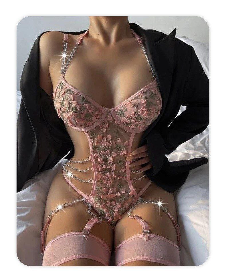 Nouveaux sous-vêtements sexy pour femmes sexy en dentelle brodée creuse