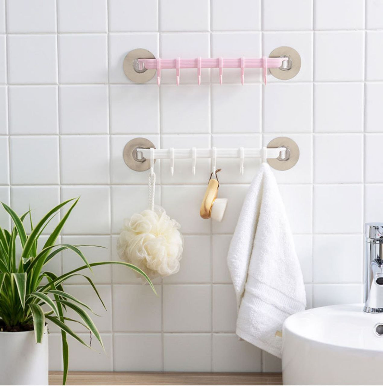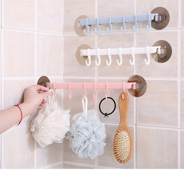 Crochet murale 6 rangées de salle de bain sans poinçon traceless rack porte adhésif