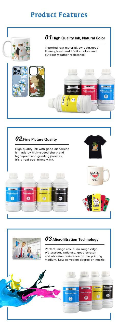 Encre à transfert thermique, encre de sublimation haute concentration, économise l'encre et ne bloque pas la buse, encre noire spéciale de sublimation