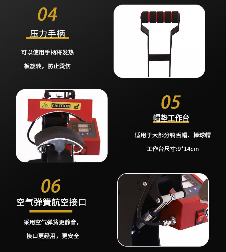 Nouvelle machine d'impression sur casquettes et chapeau dotée d'un grand format d'impression et d'un dispositif de positionnement. La machine de repassage de casquettes peut être combinée avec des composants d'étiquetage à chaud pour former un deux-en-un
