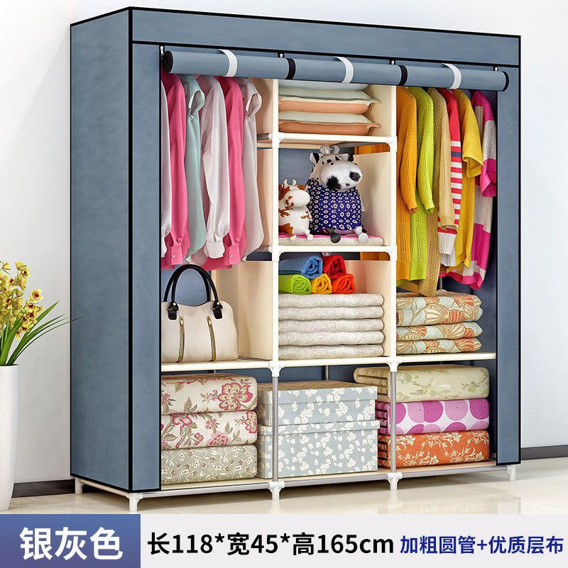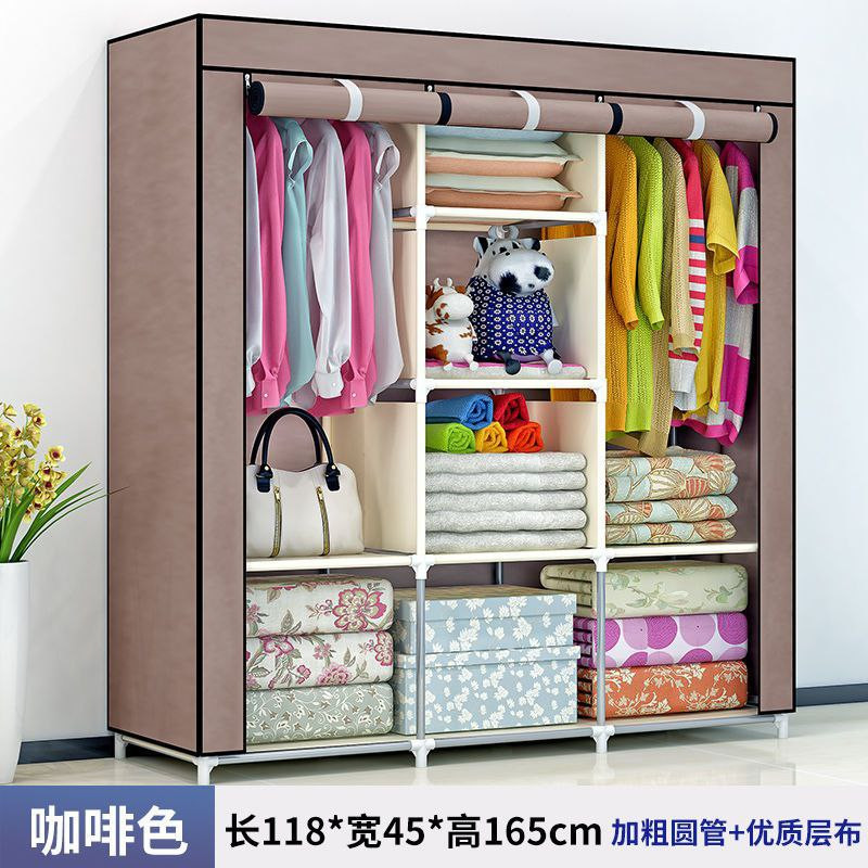 Armoire simple en tissu tuyau d'acier épaissi et renforcé salle de location chambre ménage penderie suspendue armoire anti-poussière.