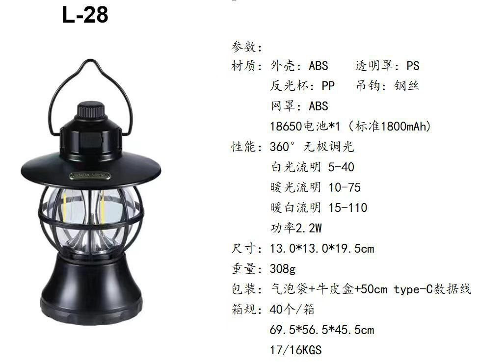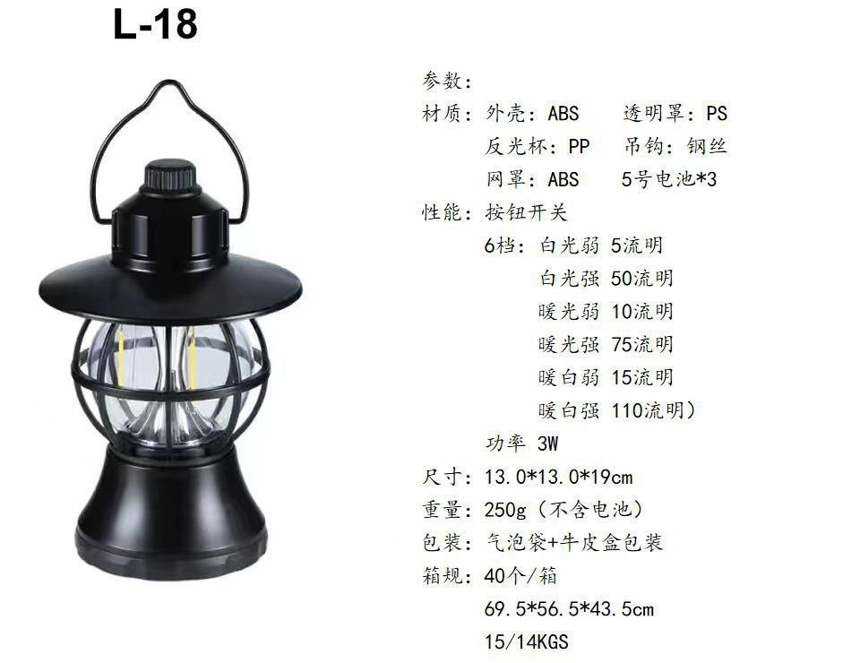 Nouvelle tente de camping en plein air transfrontalière lumière camping portable LED multifonction longue durée étanche rétro lanterne de cheval