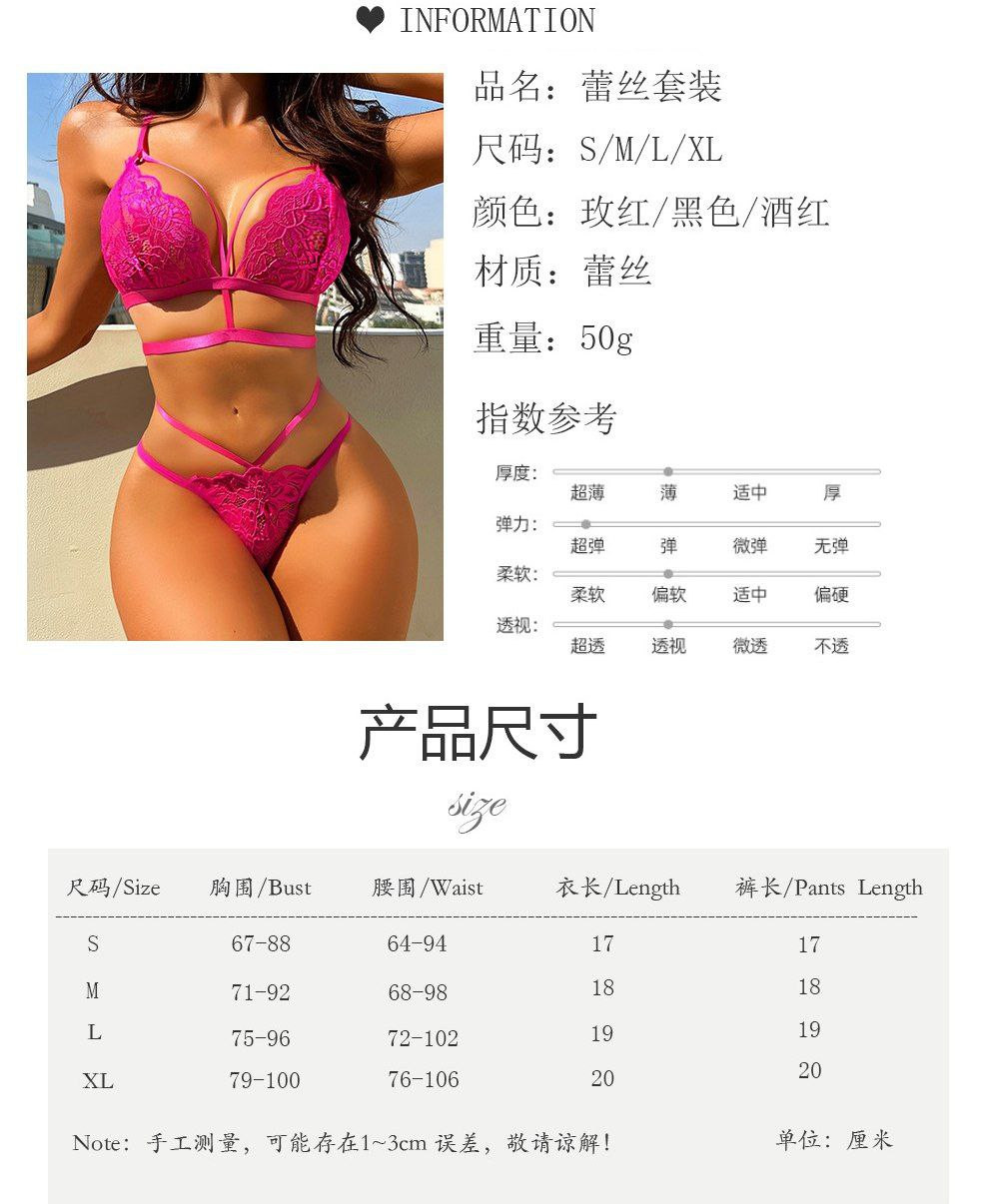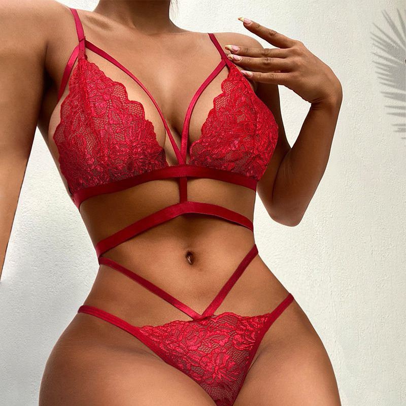 2024 nouvel ensemble de lingerie érotique en dentelle sexy européenne et américaine à trois points multicolore bikini transparent tentation pure luxure