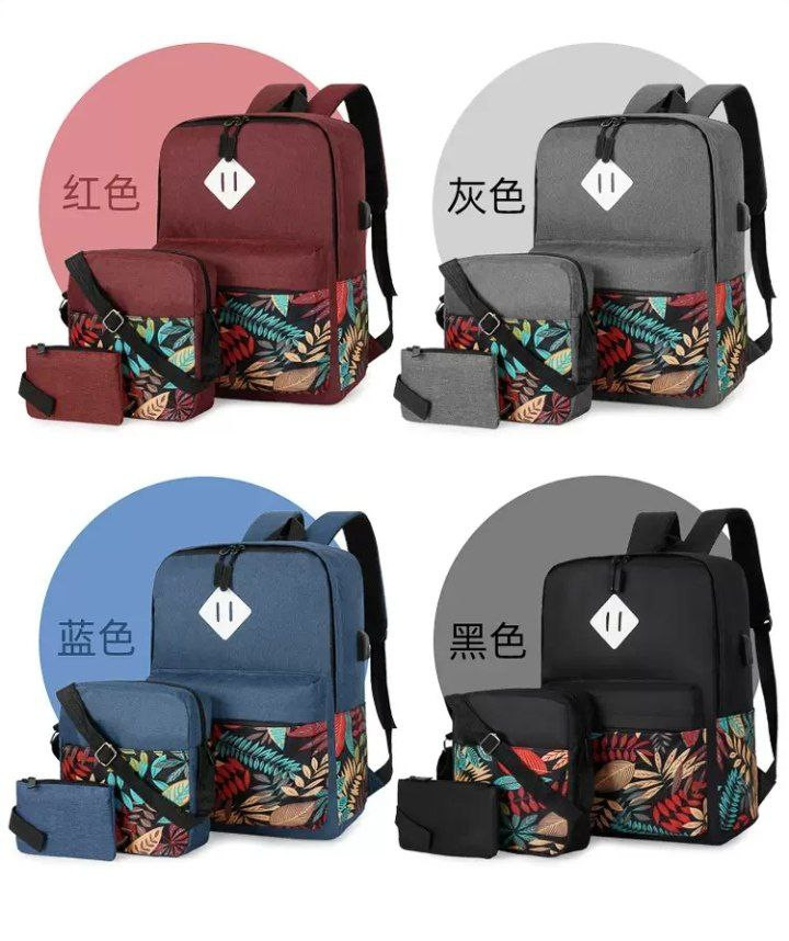 Nouveau sac à dos trois pièces transfrontalier feuille d'érable grande capacité multifonctionnel chargement USB sac à dos extérieur en tissu Oxford pour hommes