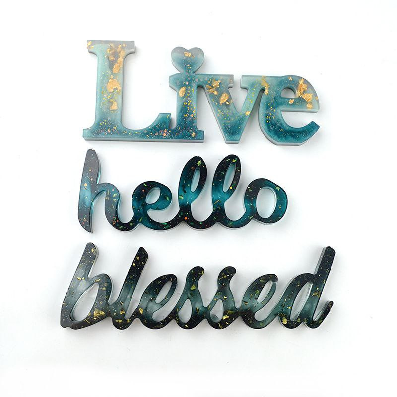 Moule à lettres, moule à colle, bijoux à bricoler soi-même, ornements en résine, ensemble d'outils abrasifs anglais, moule en silicone pour mots d'amour