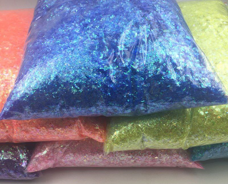 Papier bonbon en papier coquille 500 g emballé avec des autocollants en verre colorés, des fleurs écrasées colorées et des paillettes décoratives pour manucure.
