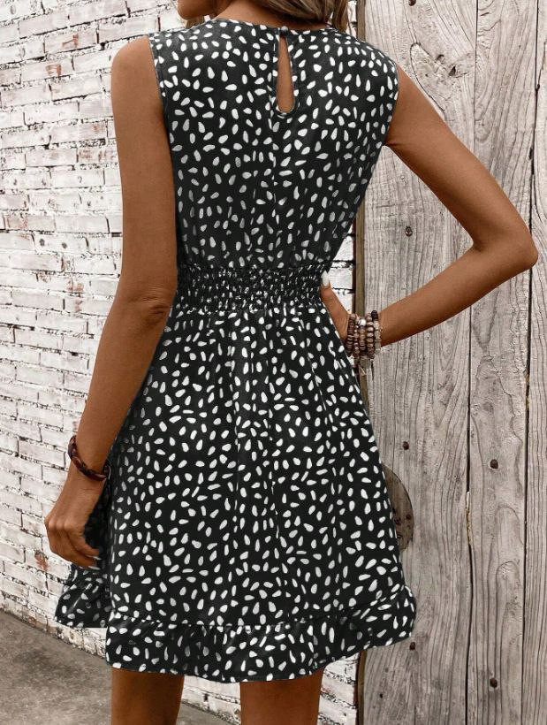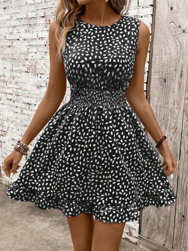 Nouvelle robe imprimée à la mode à col rond et sans manches pour femmes européennes et américaines