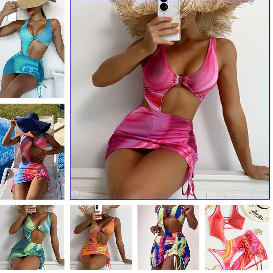 Maillot de bain trois pièces à pampilles européen, américain et africain bikini pour femme. Disponible en plusieurs couleurs.