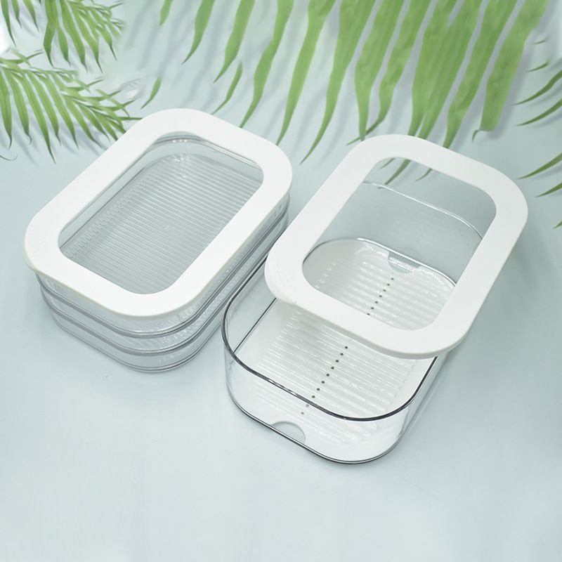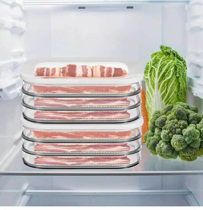 Boîte à bacon en PET la plus vendue transfrontalière, organisateur de réfrigérateur, boîte de conservation des aliments, rectangulaire à trois couches avec couvercle