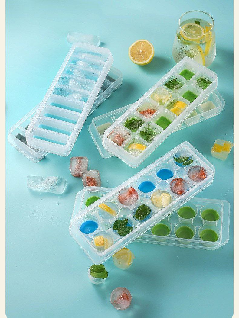 Bacs à glaçons en plastique pour réfrigérateur domestique prêts à l'emploi avec plusieurs formes pour les artefacts de fabrication de glace d'été, faciles à libérer et à empêcher le transfert d'odeurs,