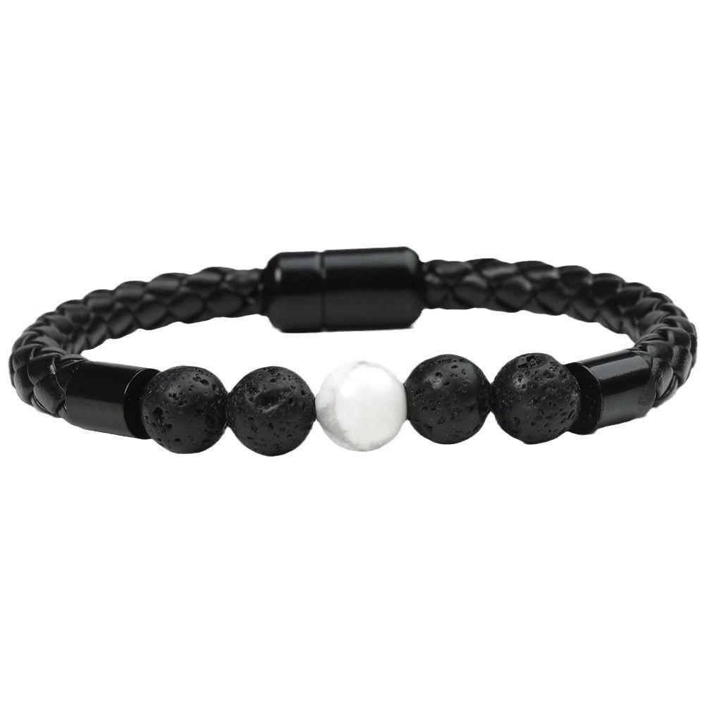 Bracelet de perles en pierre pour homme et femme bracelet en cuir à boucle magnétique