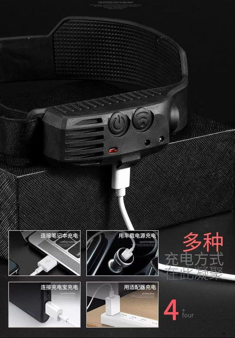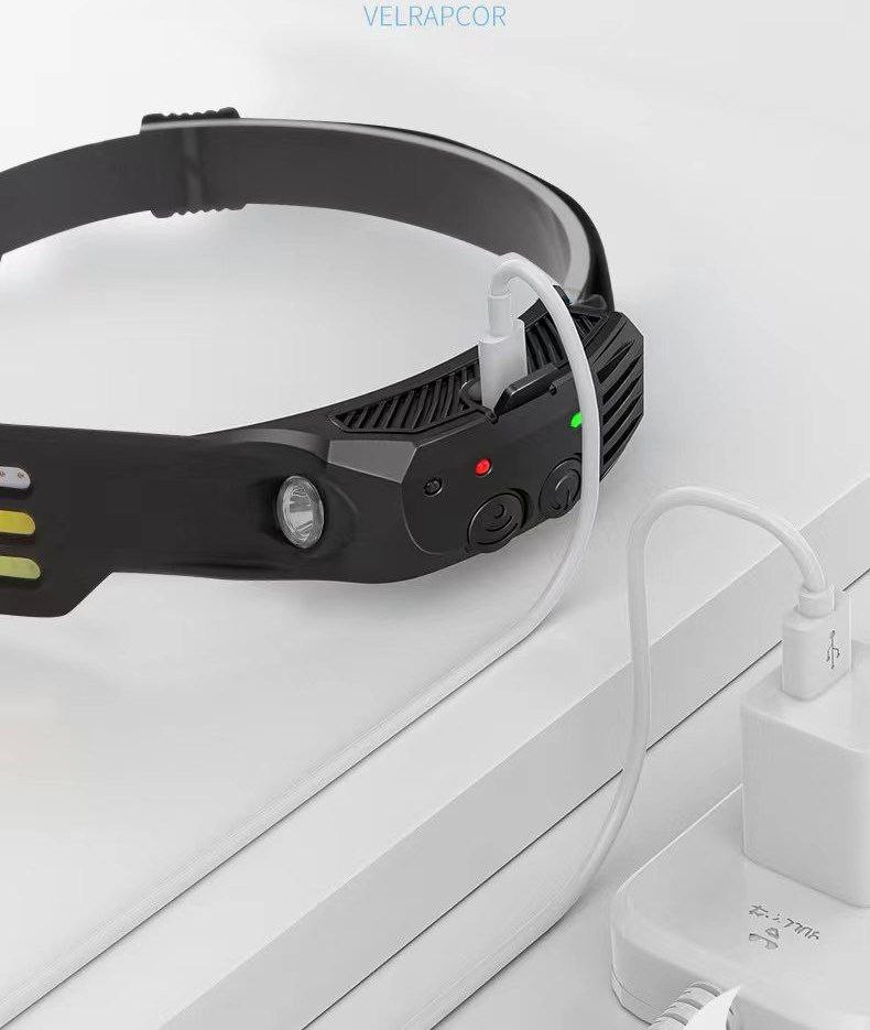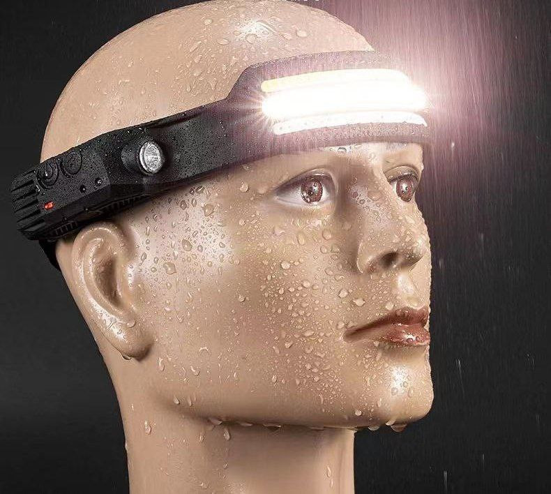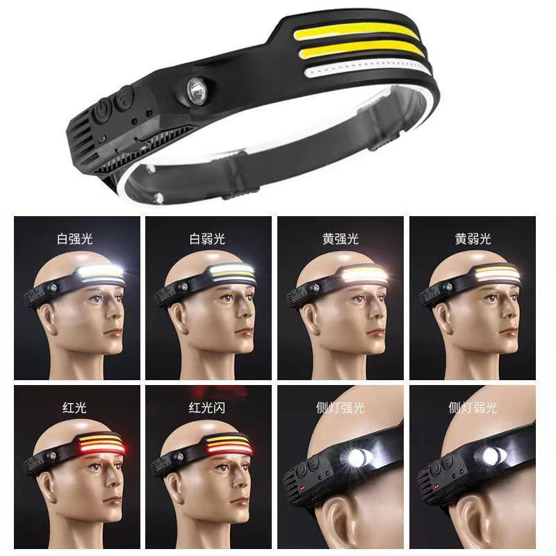 Nouvelle lampe frontale transfrontalière LED mini lampe frontale multifonction avec capteur d'onde COB pêche en plein air lampe de poche à lumière forte