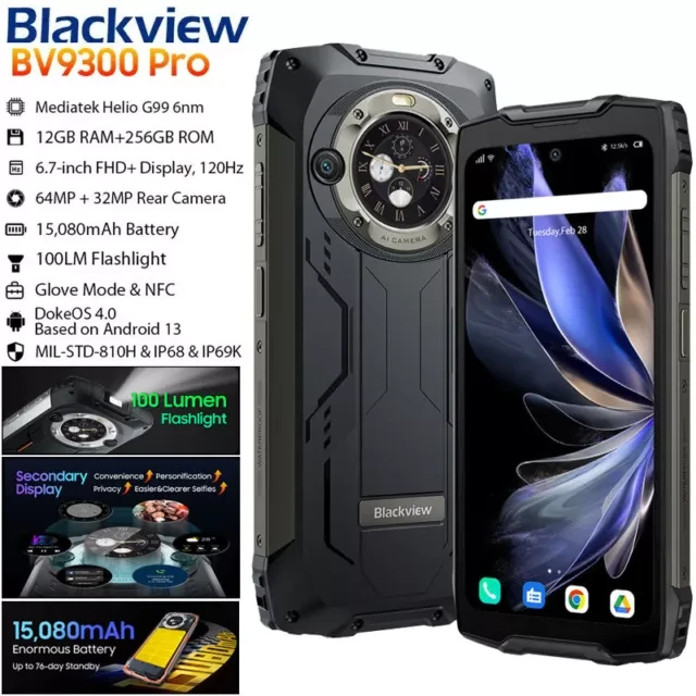 Blackview BV9300Pro Smartphone robuste Full Netcom étanche double écran 15080 mAh longue veille noir Full Netcom 4G officiel
