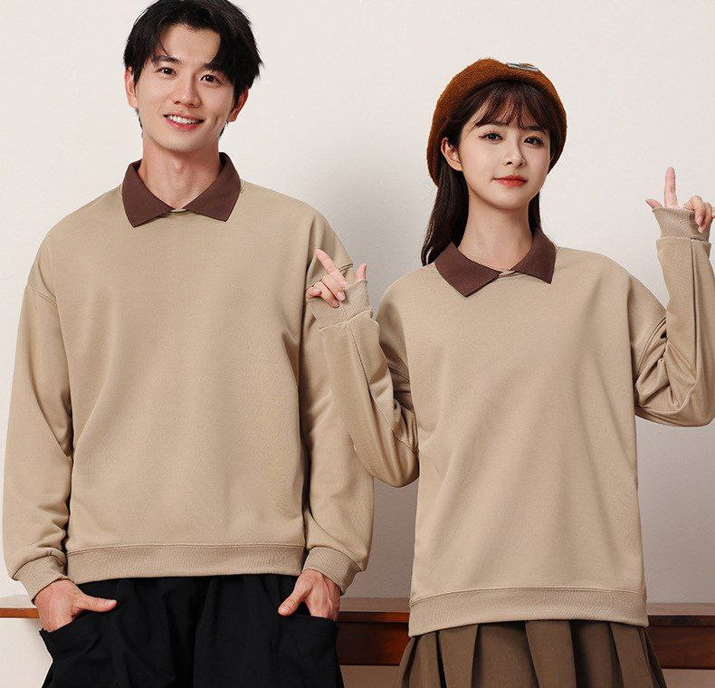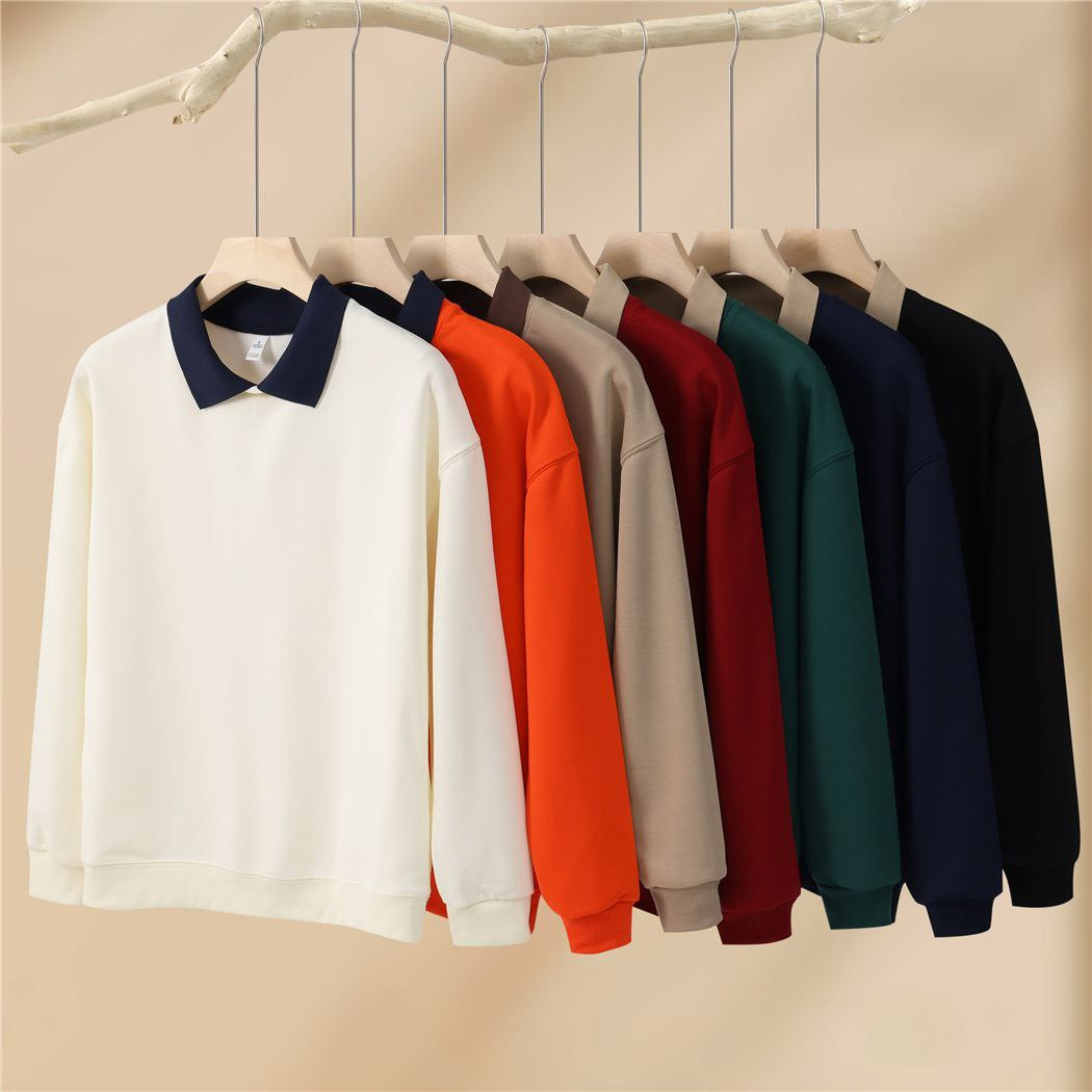 Sweat-shirt à grand revers en éponge imitation coton, couleur assortie, POLO ample à épaules dénudées, pull d'uniforme de classe d'étudiant, LOGO personnalisé
