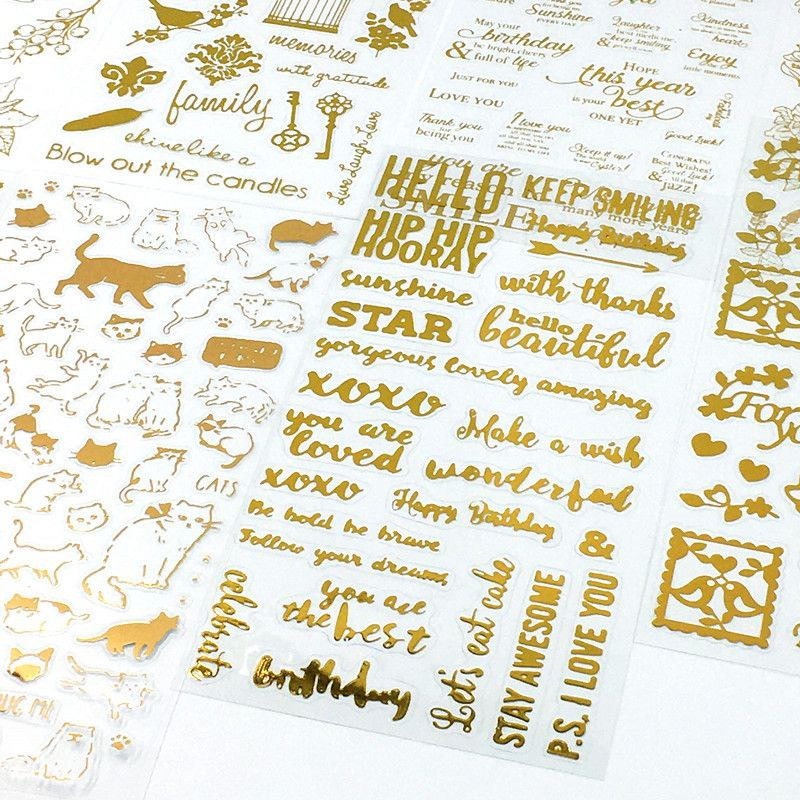 Autocollants de marquage à chaud, lettres anglaises, plantes, coque de téléphone en colle, autocollants de table, chats, manuels,