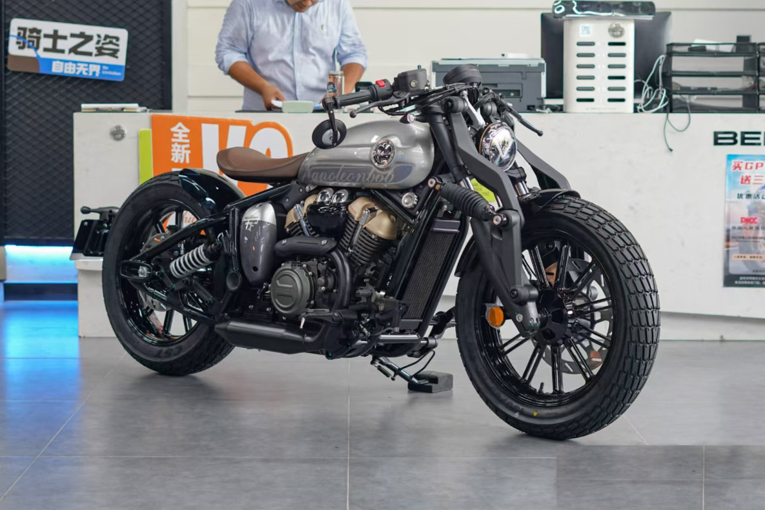 Fourche avant et absorption des chocs : elle adopte une conception de fourche avant inversée. La partie ressort absorbant les chocs est enveloppée dans une gaine en cuir de style rétro. Les parties métalliques sont traitées avec un revêtement antirouille, ce qui lui donne un aspect épais et une excellente texture. , donnant aux gens une sensation de volume qui dépasse le modèle de la classe 250cc. Le disque de frein avant est énorme, atteignant 4,5 mm, équipé d'un système ABS et d'étriers de marque propre.