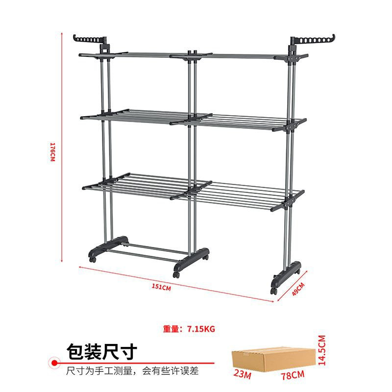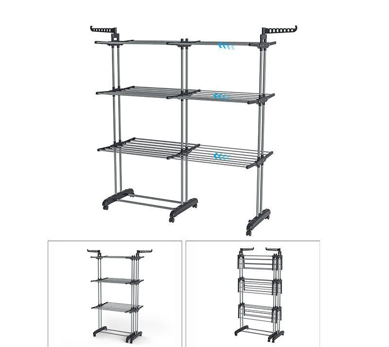 Nouveau étendoir à linge télescopique à double rangée, étendoir à vêtements multifonctionnel pliable à trois couches, étendoir mobile pour balcon de chambre