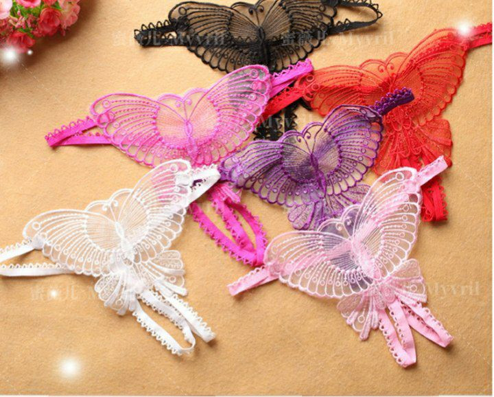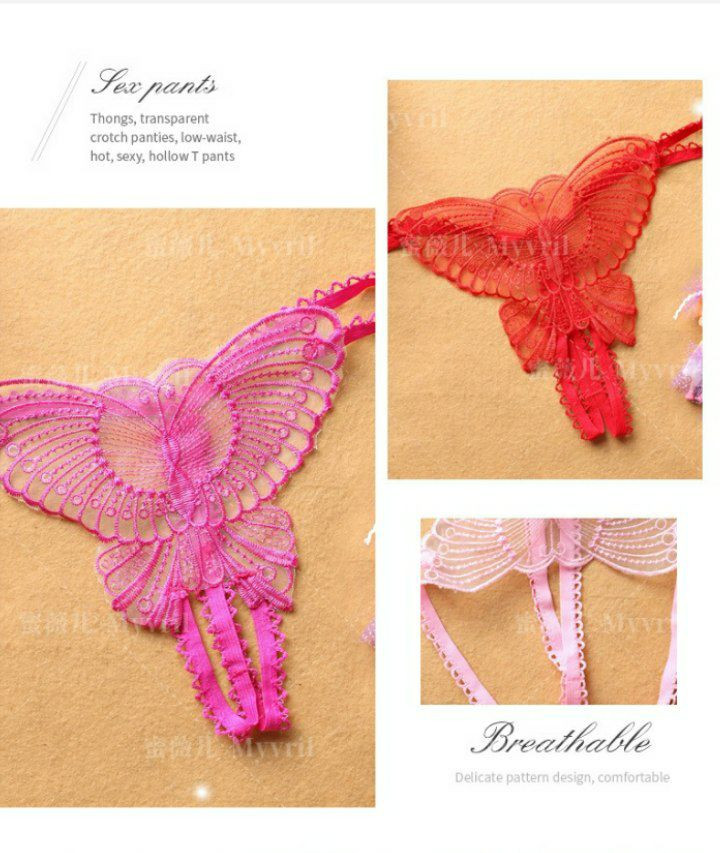String pour femme entièrement transparent, culotte en T, grand papillon, jolie fille japonaise, entrejambe ouvert, sous-vêtements sexy 003