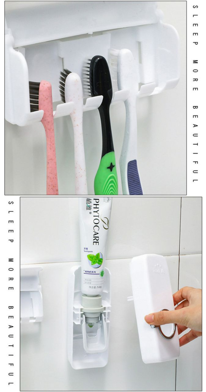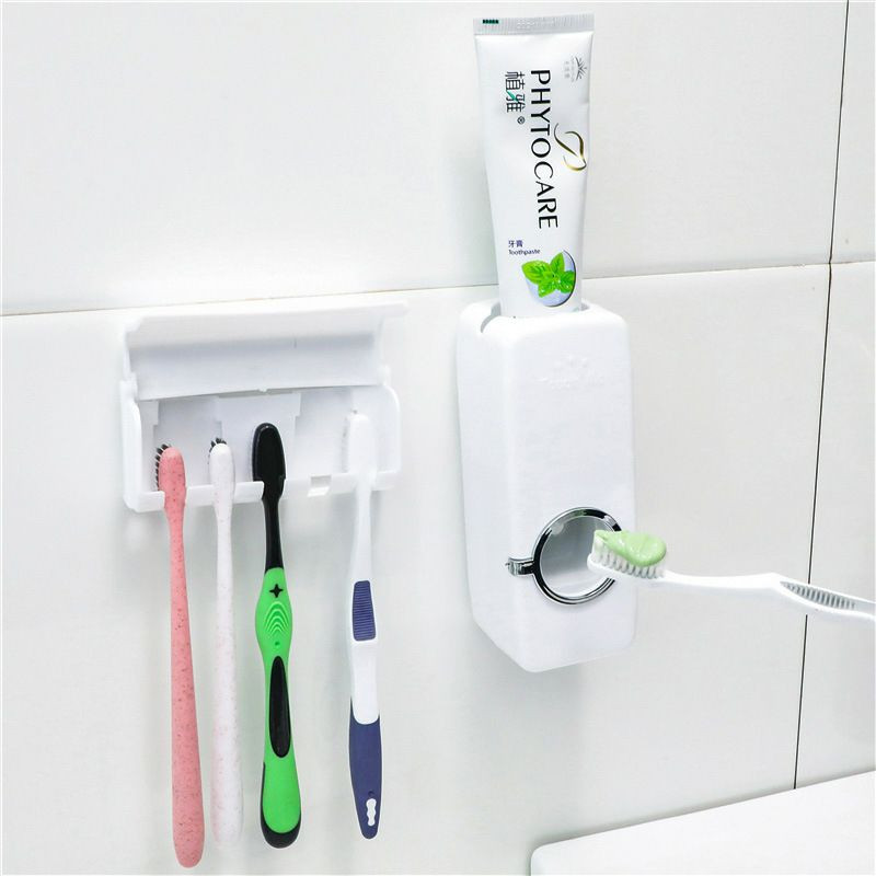 Ensemble de porte-brosse à dents avec presse-dentifrice automatique, presse-dentifrice mural sans poinçon
