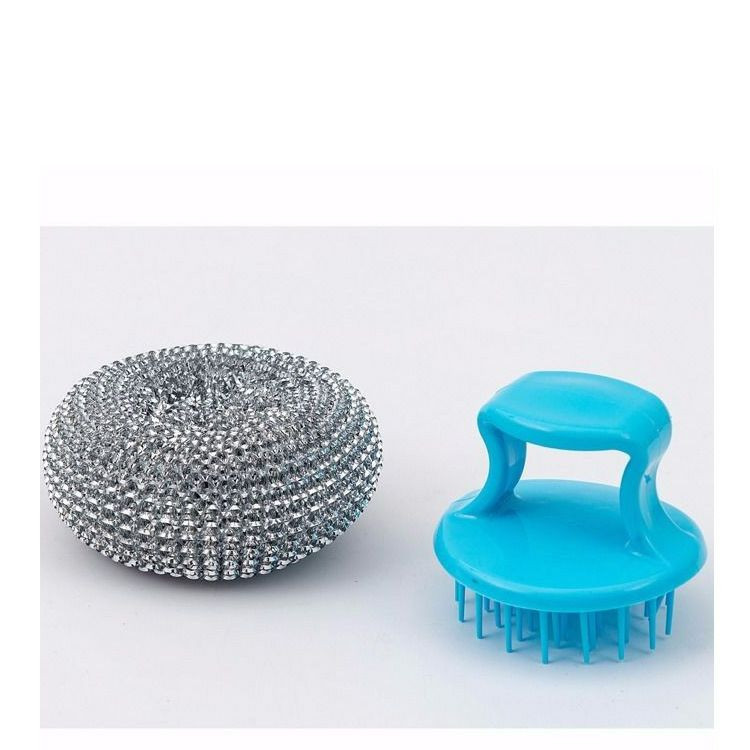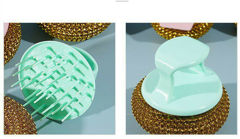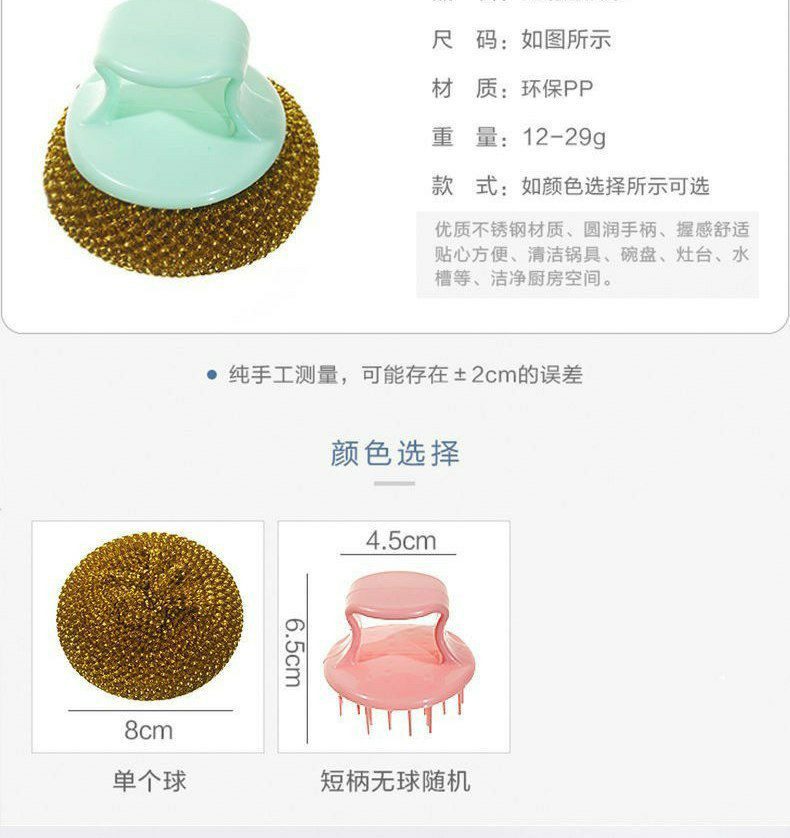Boule de nettoyage de pot de brosse en fil d'acier, pot anti-rayures en PET, anti-perte, huile antiadhésive, fournitures de cuisine, brosse à vaisselle avec poignée