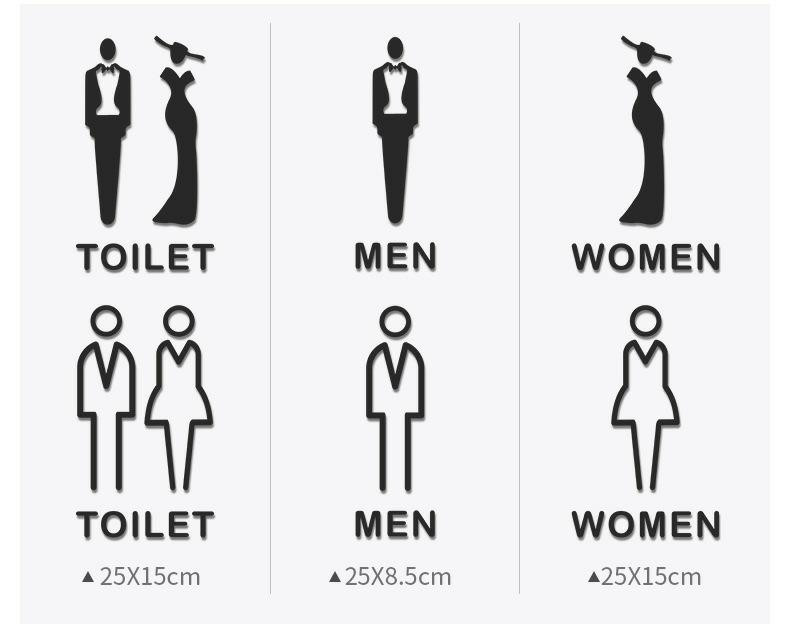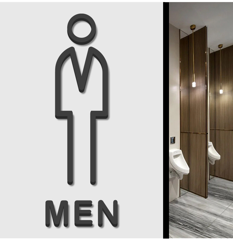 Signe de porte de salle de bain en acrylique Modèle tridimensionnel Médiction de toilette Men et femmes Bureau de toilette public Signe de toilette