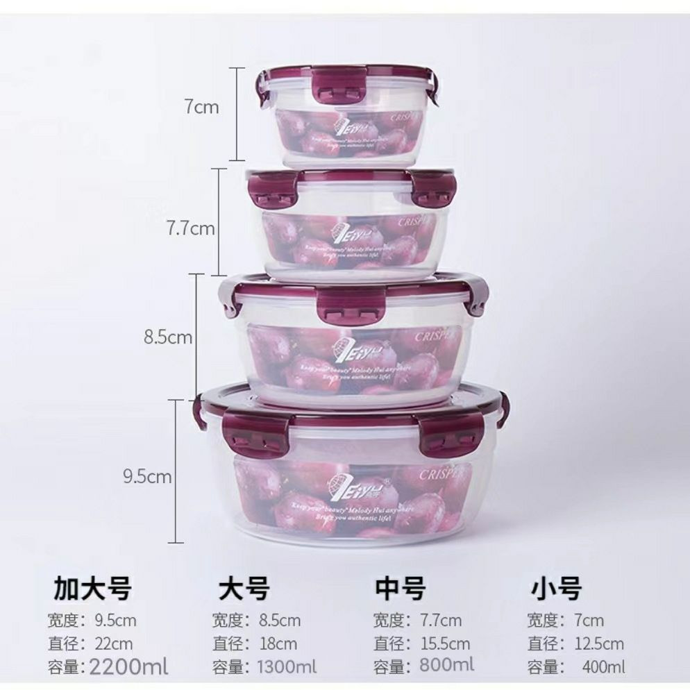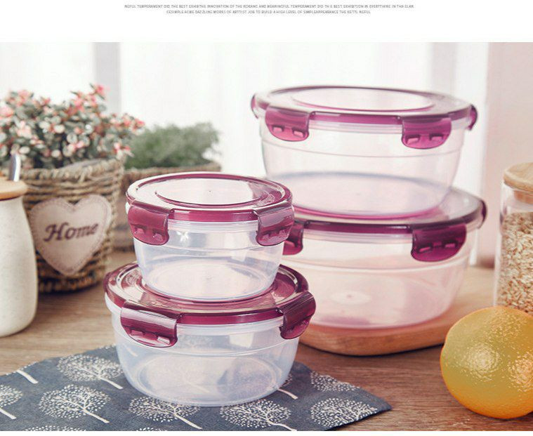 Cuisine Plastique Boîte de maintien frais Bonto Boîte à lunch Round Plastique Micro-ondes Réfrigérateur Alimentation Boîte de scellage lot de 4pcs