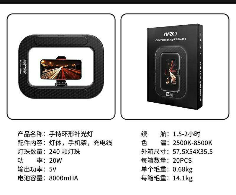 Nouveau YM200 selfie portable Ringlight enregistrement vidéo prise de vue vidéo Kit Smartphone Selfie photographie Led jante de lampe anneau lumière pour maquillage photographie