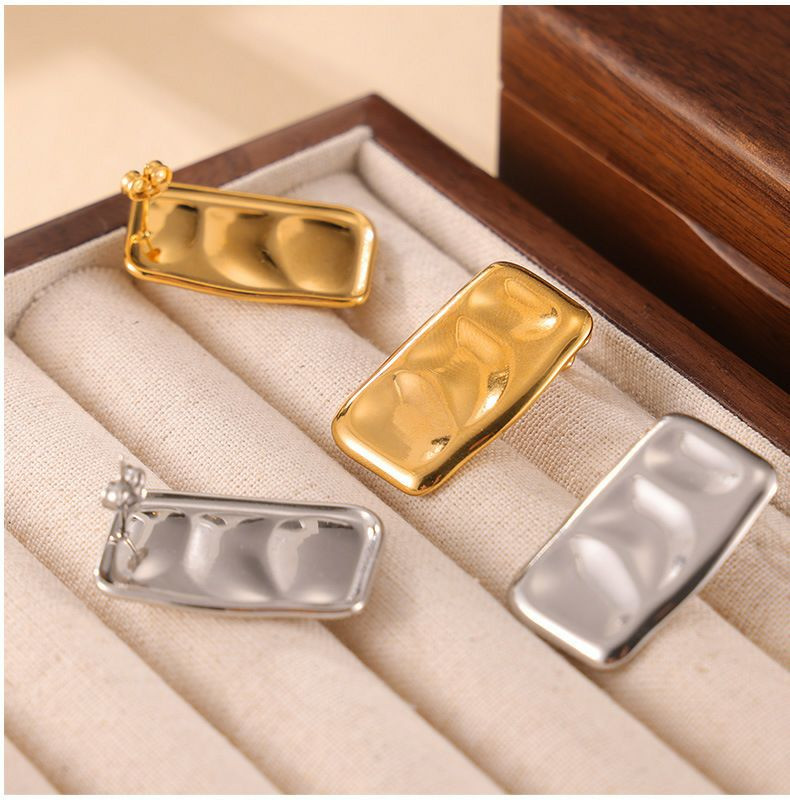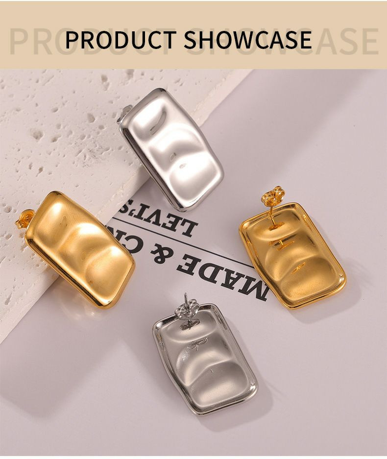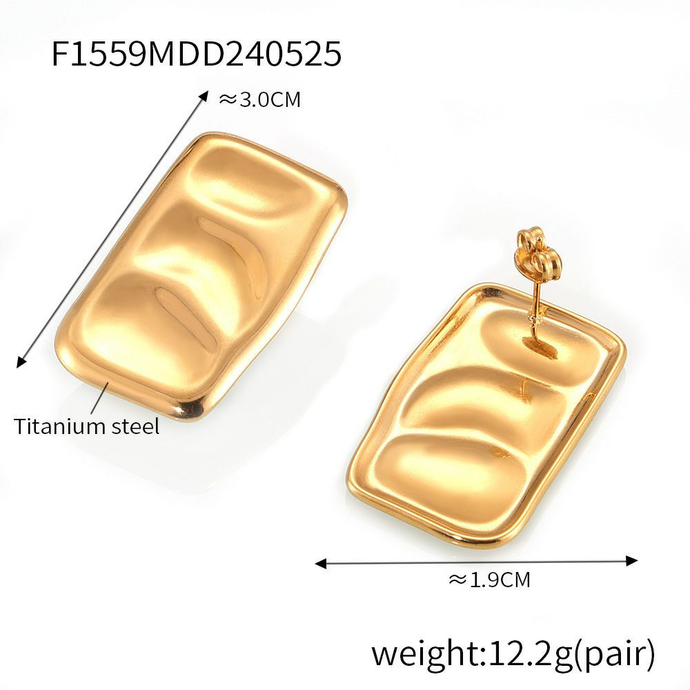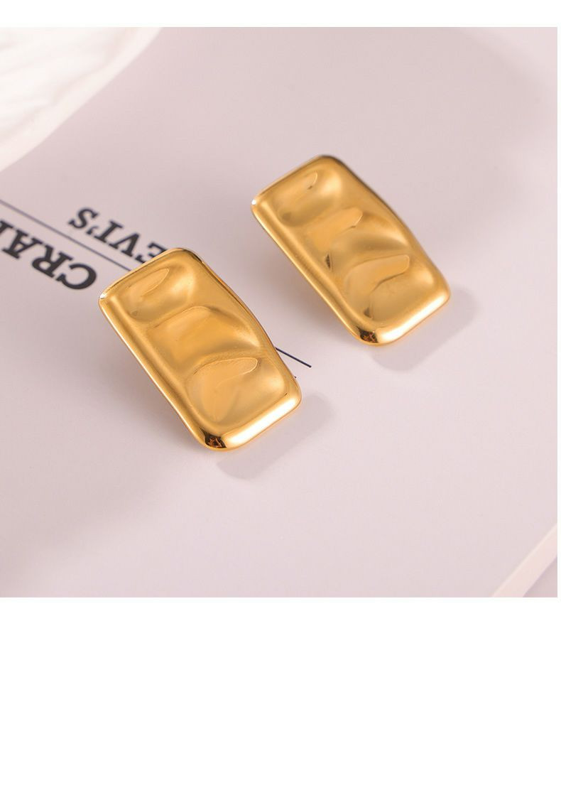 Boucles d'oreilles en acier inoxydable pour femmes, Puces d'oreilles martelées rectangles froissés, grosses boucles d'oreilles en or, boucles d'oreilles audacieuses