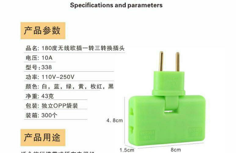 Adaptateur de prise plate à 3 voies 1500W, prise d'alimentation ue, Extension pliable Portable, prise de convertisseur de voyage Certifié à 180 degrés Rotary Wireless One-Turn Ti-Converter Head