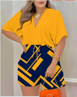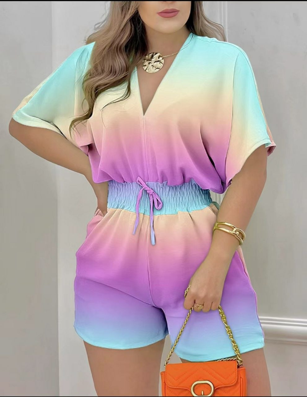 Combinaison d'été imprimée pour femmes, mode décontractée, combishort, col en v, élégante, barboteuse, manches courtes