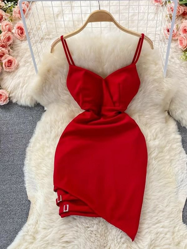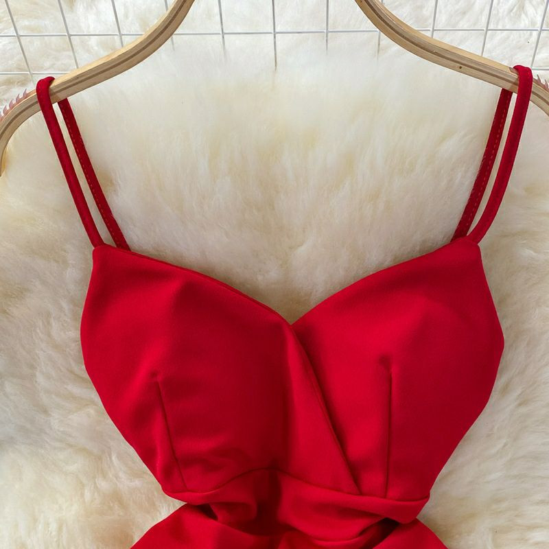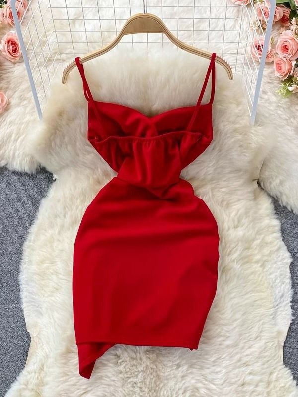 Robe de soirée taille haute, Slim, sans manches, bretelles solides, Mini robe dos nu, col en v, Sexy, été