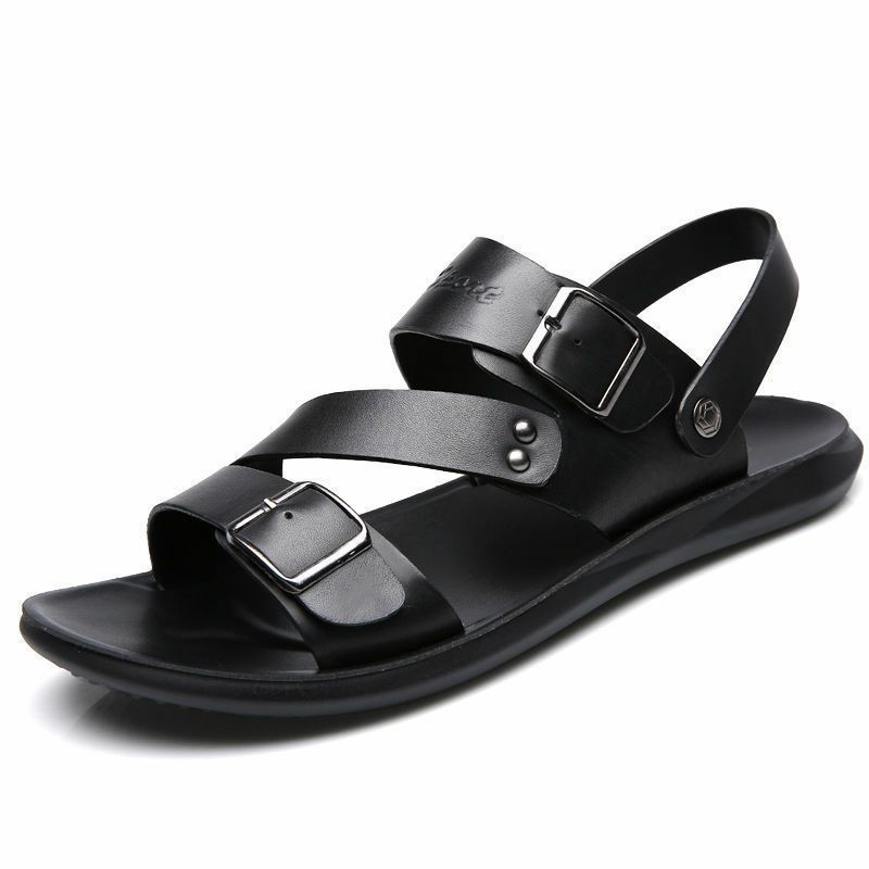 Sandales romaines classiques en cuir pour hommes, pantoufles d'extérieur, tongs de plage, sandales plates, été, nouveau pour hommes.