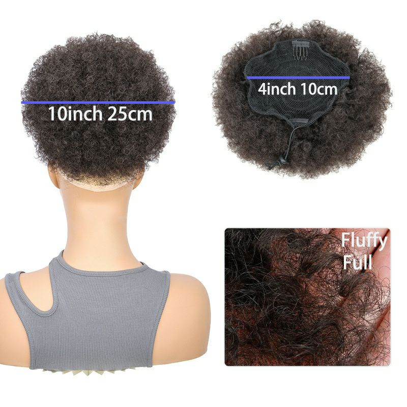 Extensions de cheveux afro Puff avec cordon de serrage - Queue de cheval afro - Cheveux synthétiques courts et bouclés
