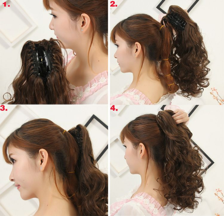 Nouveau style multi-couleurs extensions de cheveux en queue de cheval ondulés pièce de cheveux avec pince à griffes